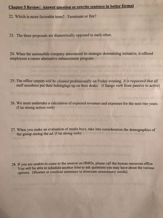 Chapter 5 Review Answer Question Or Rewrite Sentence Chegg Com